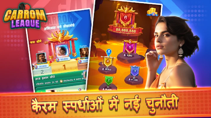 Carrom League सिर्फ खेलने से कहीं बढ़कर है; यह अपने कौशल को निखारने और बोर्ड पर अपनी पहचान बनाने का एक अवसर है। विभिन्न प्रकार के अनूठे डिज़ाइन और स्किन्स के साथ अपने कैरम बोर्ड और गोटियों को व्यक्तिगत बनाएं। चाहे आप ऑफ़लाइन अभ्यास करना चाहते हों या वास्तविक समय में पेशेवर खिलाड़ियों के गहन मैचों को देखना चाहते हों, Carrom League हर कैरम प्रेमी के लिए कुछ न कुछ प्रदान करता है। वैश्विक लीडरबोर्ड पर चढ़ें, अपने प्रतिद्वंद्वियों को मात दें और कैरम किंग का खिताब हासिल करें। प्रामाणिक ध्वनि प्रभावों और तेज़-तर्रार मैचों के साथ, Carrom League घंटों का मनोरंजन सुनिश्चित करता है।