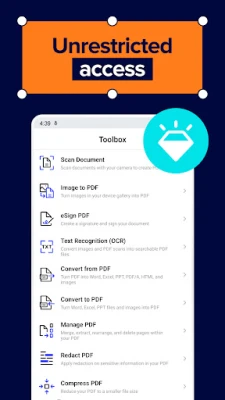 यह ऐप एक ही जगह पर PDF से जुड़े आपके सभी काम पूरे करता है। इसमें आप PDF फ़ाइलें पढ़ सकते हैं, संपादित कर सकते हैं, एनोटेट कर सकते हैं, स्कैन कर सकते हैं, हस्ताक्षर कर सकते हैं और आसानी से साझा भी कर सकते हैं। यह आपके सभी PDF कार्यों के लिए एक संपूर्ण समाधान है।