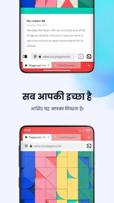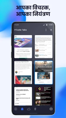 Vivaldi के साथ अपनी उंगलियों पर वेब की पूरी शक्ति का अनुभव करें – एक ऐसा ब्राउज़र जो आपकी निजता को सर्वोपरि रखता है और आपके ब्राउज़िंग अनुभव को आपकी इच्छानुसार ढालता है। यहाँ आप ही नियंत्रण में हैं; Vivaldi आपकी गतिविधियों पर नज़र नहीं रखता, और इसके निजी गुप्त टैब यह सुनिश्चित करते हैं कि आपका विचरण इतिहास पूरी तरह से गोपनीय रहे। निजी मोड में, आपकी खोजें, विज़िट की गई वेबसाइटें, कुकीज़ और अस्थायी फ़ाइलें संग्रहीत नहीं होती हैं, जिससे आपको डिजिटल दुनिया में सुरक्षित और अदृश्य रहने की पूरी स्वतंत्रता मिलती है।